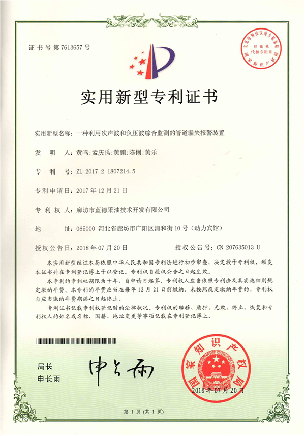 實(shí)用新型專利證書